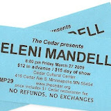 I saw Eleni Mandell last night at the Cedar Cultural Center. i uploaded some pix to Picasa. So you can look at the slideshow here (small) or click on it and see the photos in full size. Warning: They’re not any clearer large. I was sitting in the back and didn’t want to disturb anyone so I didn’t use flash.